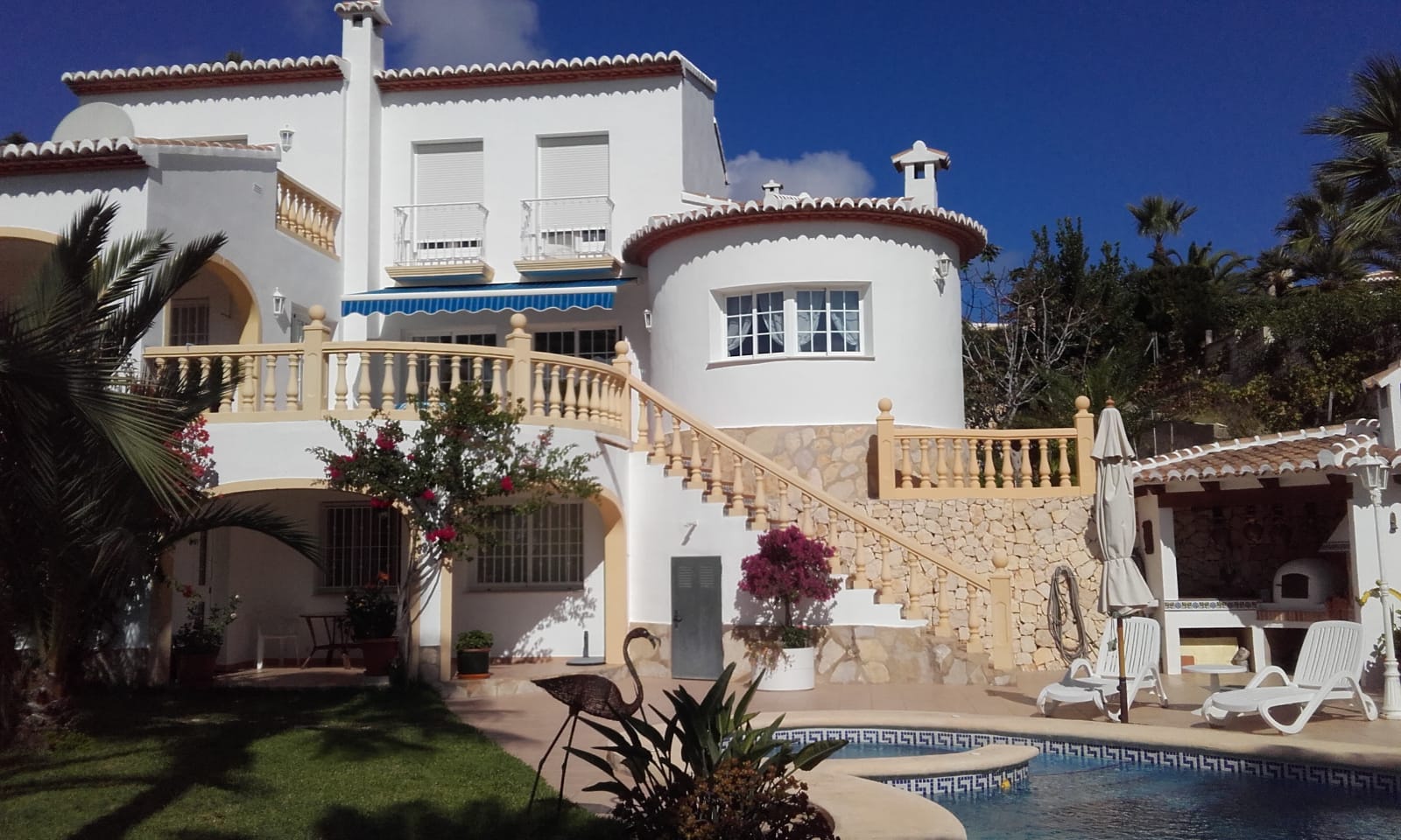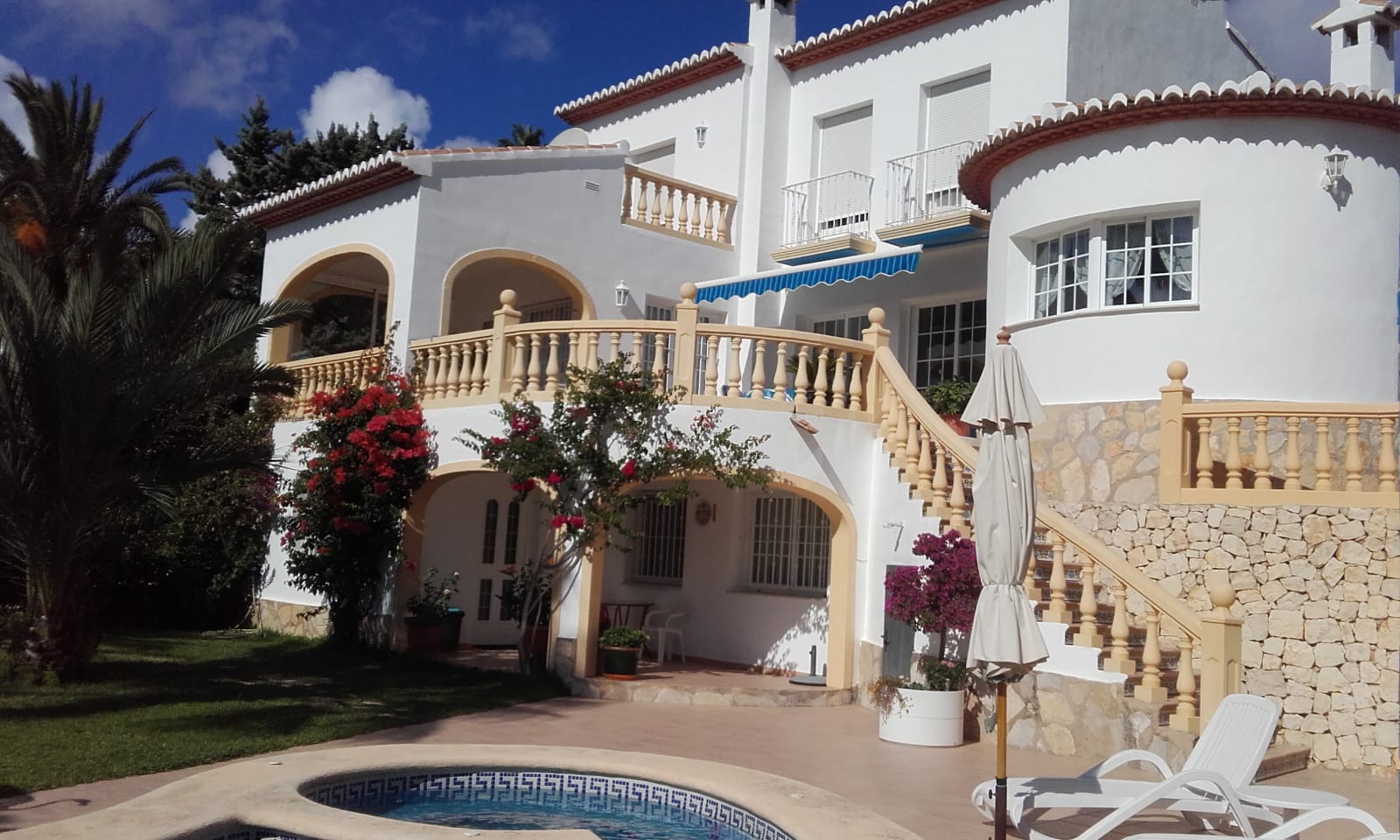 Overview: SOLD! This beautiful villa in the suberb urbanisation of Balcon al Mar enjoys a full panoramic sea view from the highest 2 levels. The villa has been builded according swiss quality, solid, strong and good issolated. The plot is 900m2, landscaped with kidney pool and 290m2 living surface spread over 3 levels. Only serious clients!! Reduced from 595.000 to 545.000 By good weather you can see Ibiza from the villa!!.
